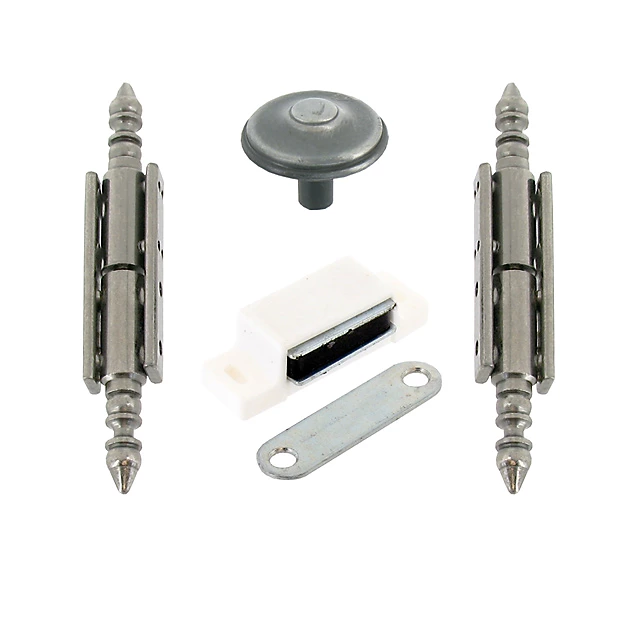 Kit ameublement vieux fer patiné pour articulation de porte de meuble.